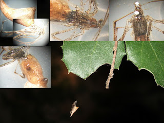 | Subfemella del 21.vi.2015 trobada dins de niu d'Sceliphron curvatum, la qual larva s'hi estava endinsant |